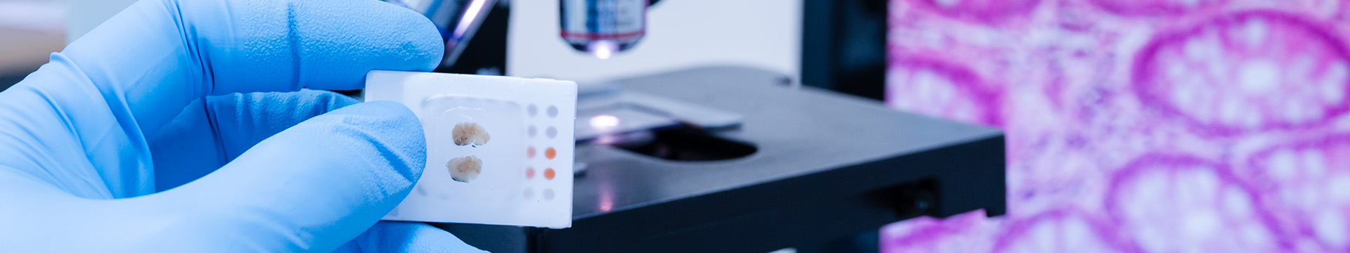 - 病理組織診断(組織診):内視鏡でとられた胃粘膜の生検組織、虫垂、肺などの手術による切除標本など、組織として形のあるものを調べます。生検で胃がんと診断された方が手術を受けた場合、胃切除された胃の組織も調べ、がんが取り切られているかなどについて詳しく検討し、臨床医に報告をします。